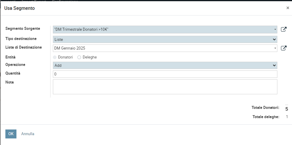 Per ogni attività di Direct Mailing periodico dovrai creare una lista a partire dal segmento che hai creato in precedenza.