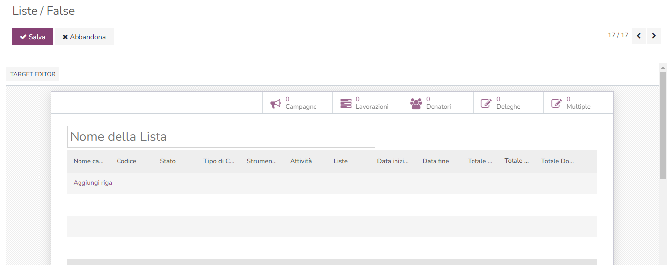 Dalla lista> TARGET EDITOR