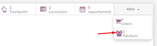 Una volta create, le relazioni sono visibili sull'anagrafica dal contatore dedicato.